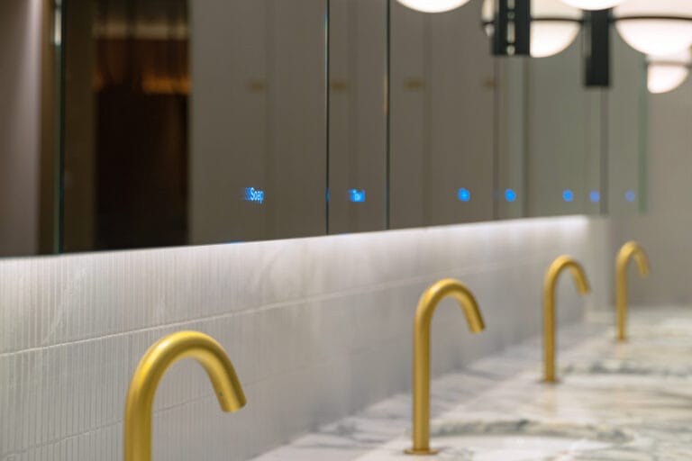 For the newly refurbished washrooms of the landmark building complex, Dolphin looked to create a feel of individual washpoints for the washroom users whilst maintaining the full Alavo system and its benefits.