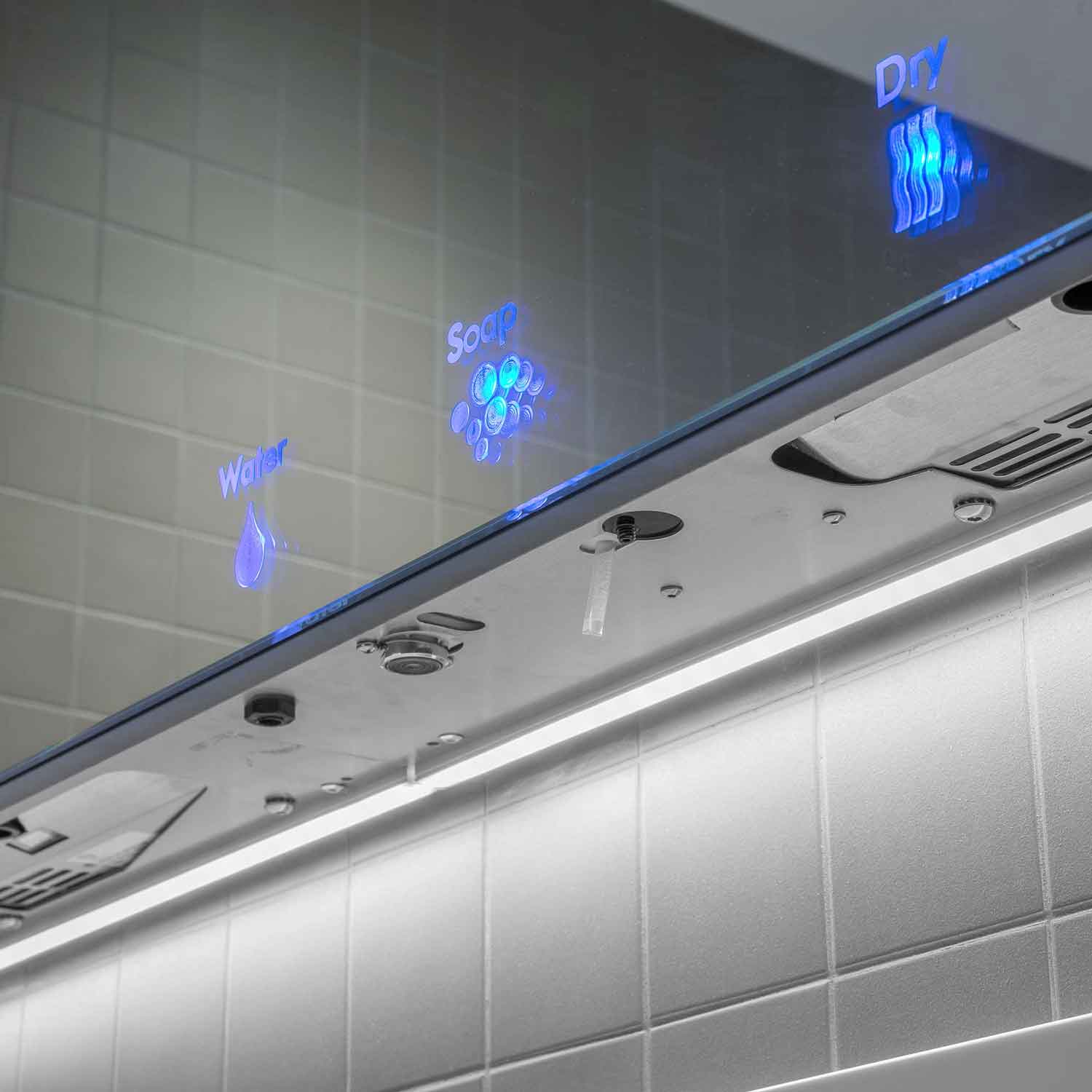 • Integrated hand dryers that sit behind mirrors mean less visual clutter and maximum functionality.