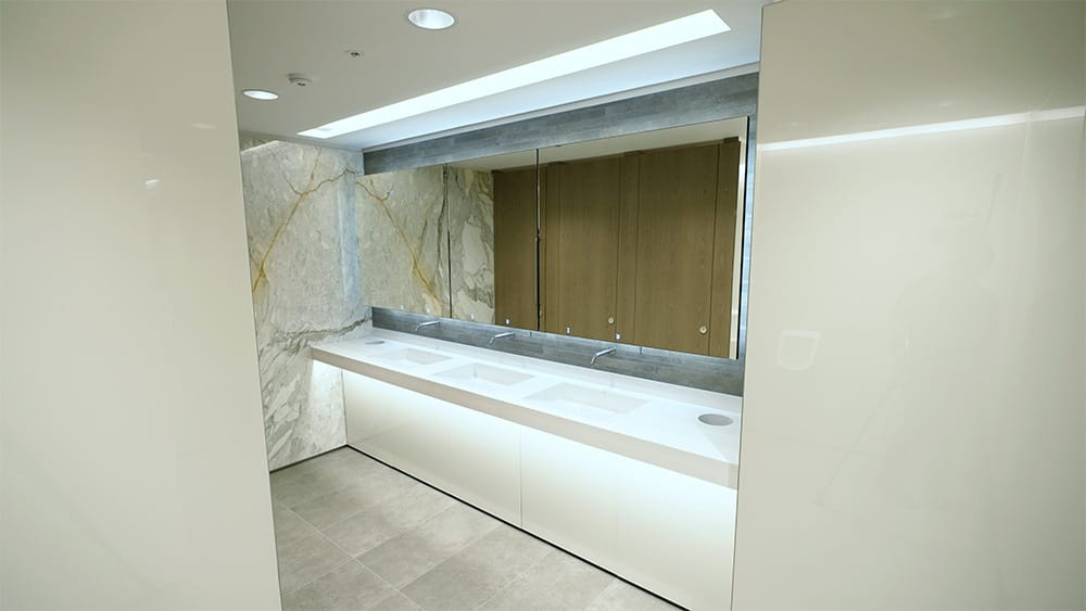 Our client specifically requested the Alavo Mirror System, which they had specified on previous floors where Dolphin Solutions had worked on numerous other washroom projects.