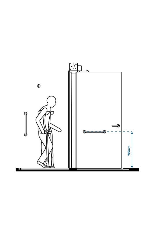 If installing a vertical pull bar handle on an accessible door, the bottom end of the pull handle must not be lower than 700mm and not higher than 1000mm above the floor.