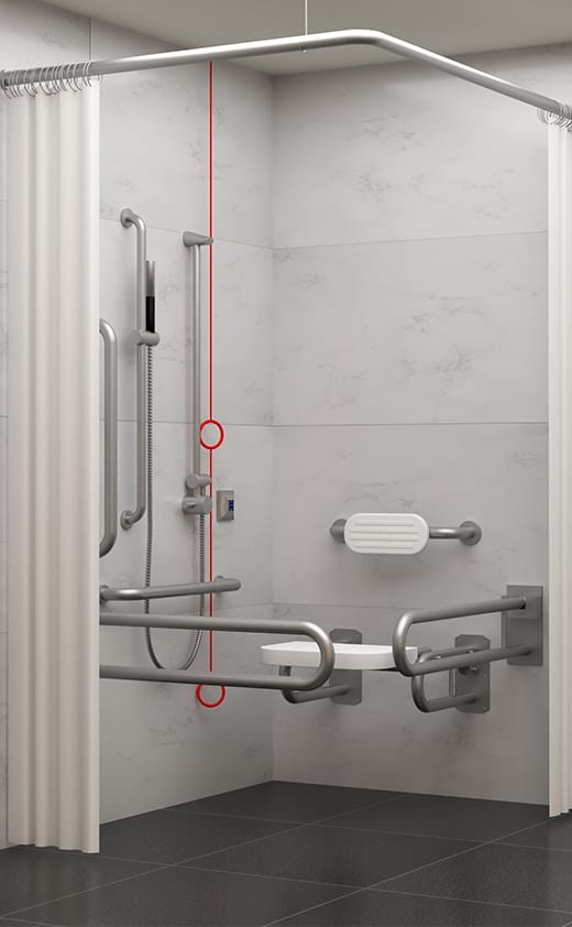 When it comes to commercial shower design considerations for accessible showers, ensure they include all the accessible washroom products that comply with regulations and codes of best practice standards.