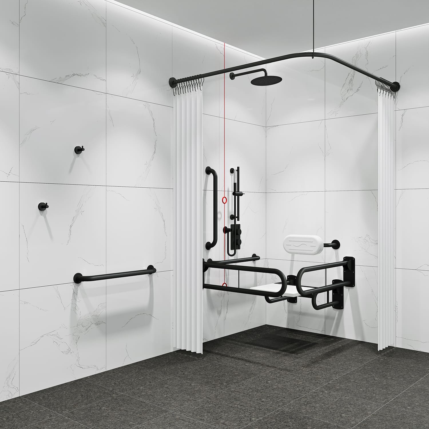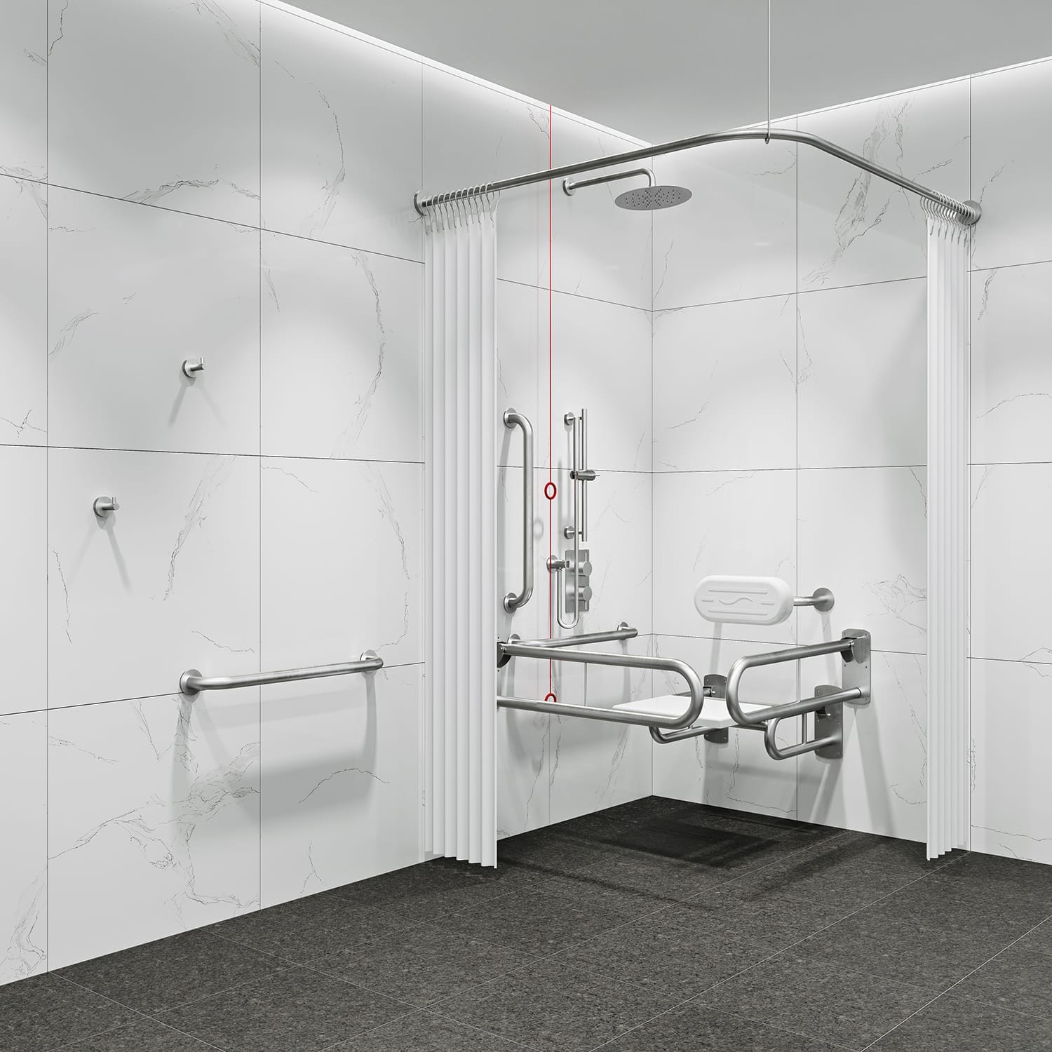 - All items of a co-ordinated design to achieve a consistent aesthetic look throughout the washroom