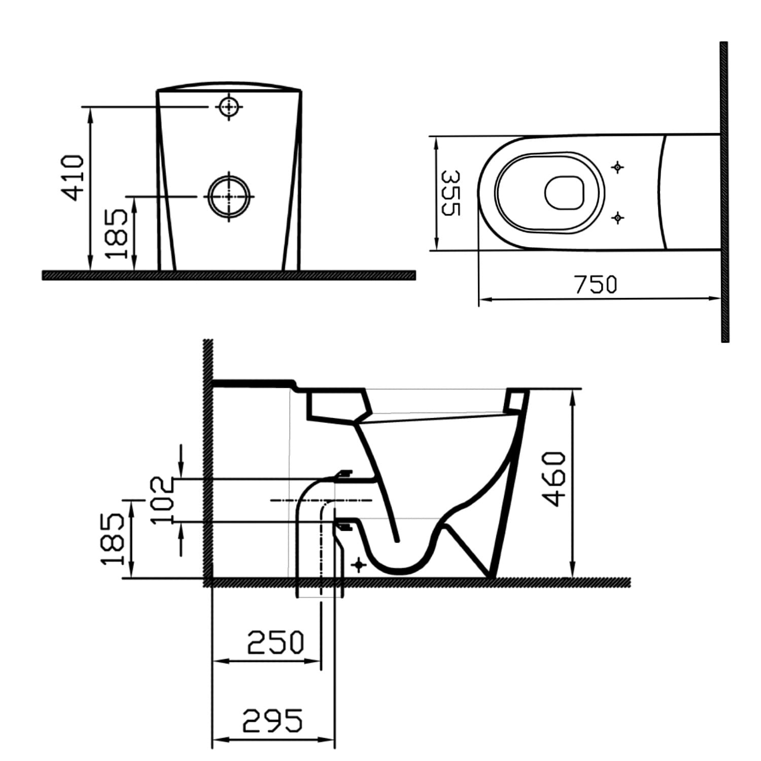 • Dimensions: projection 750mm x width 355mm x height 460mm