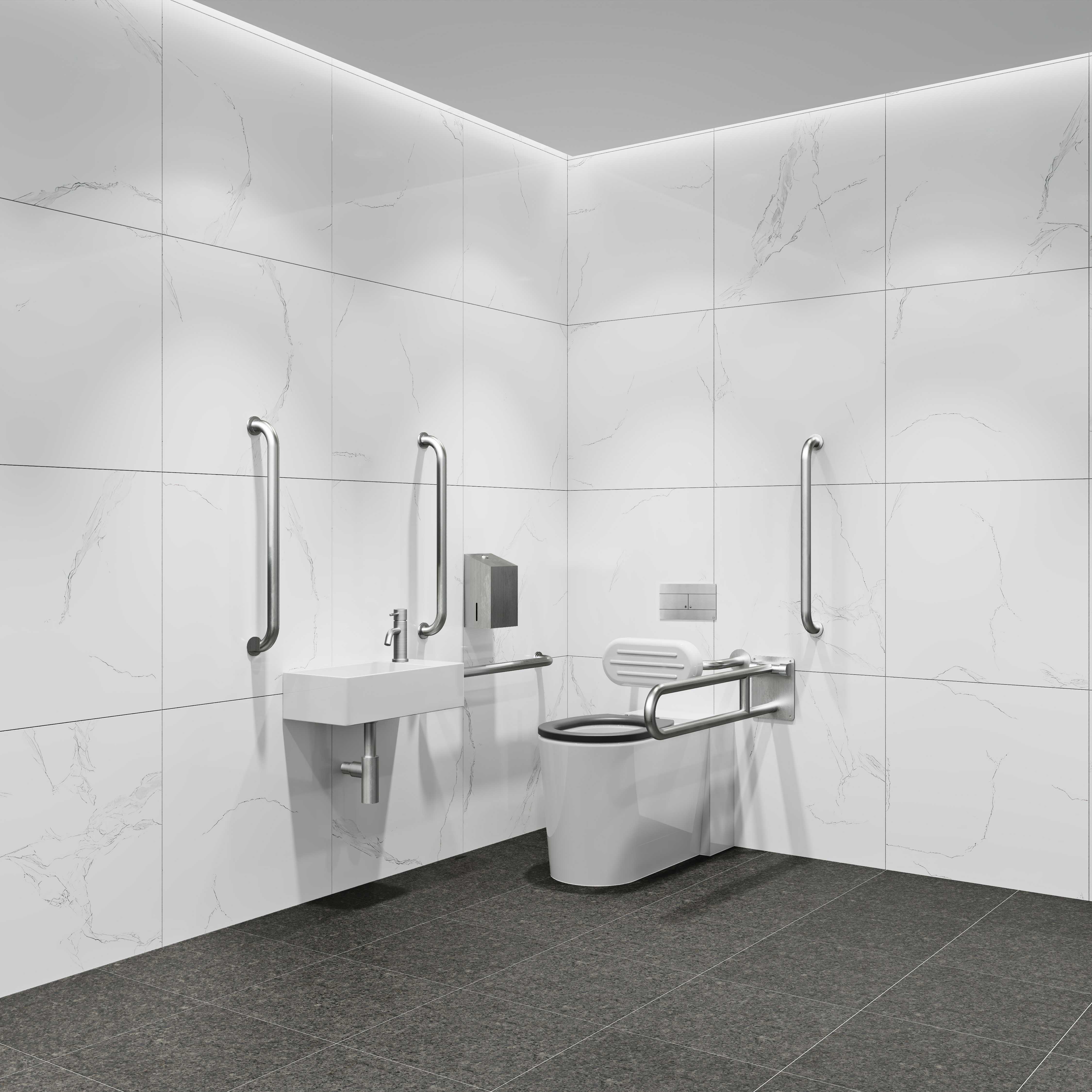 - All items of a co-ordinated design to achieve a consistent aesthetic look throughout the washroom