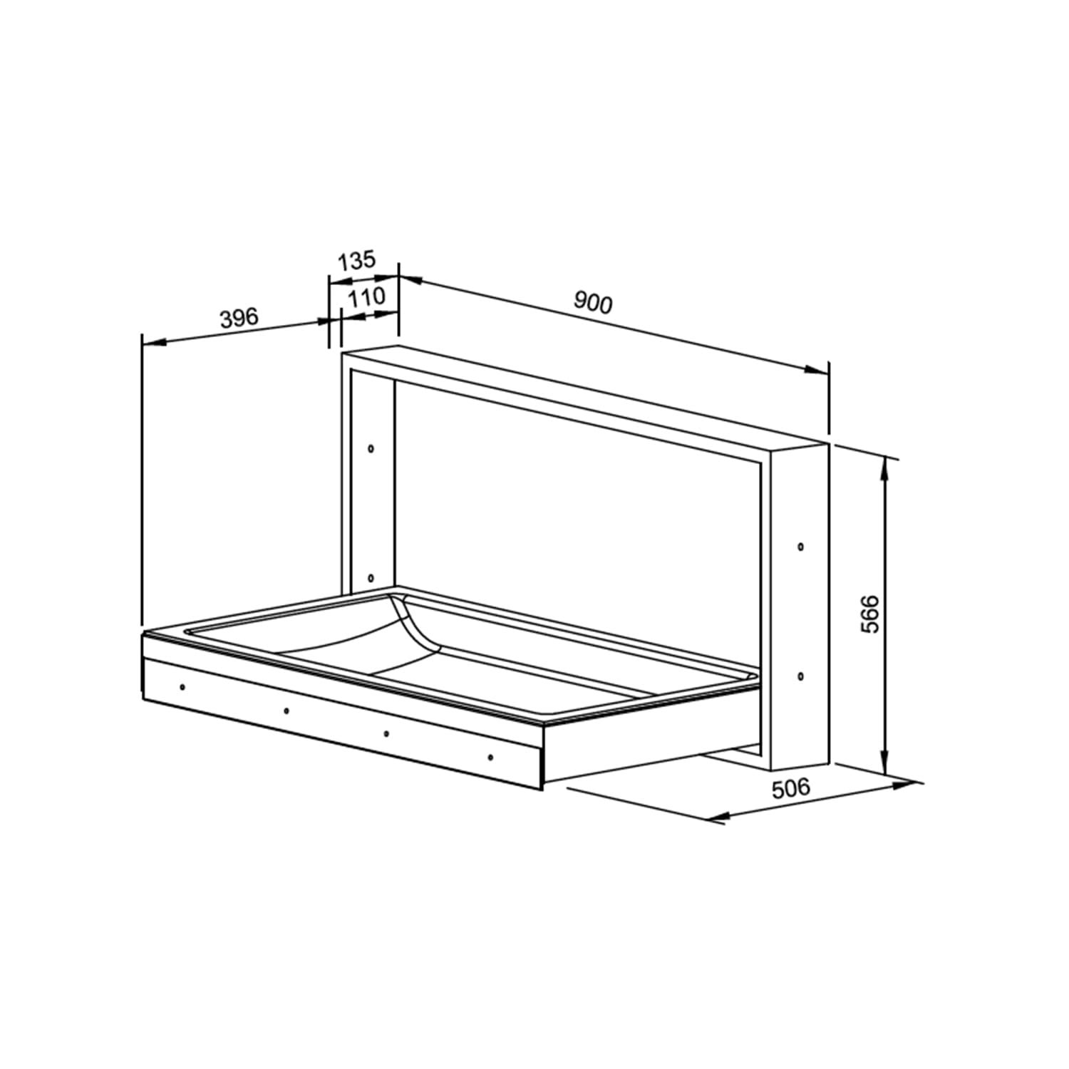 - Installation dimensions: 902 x 568 x 110 mm