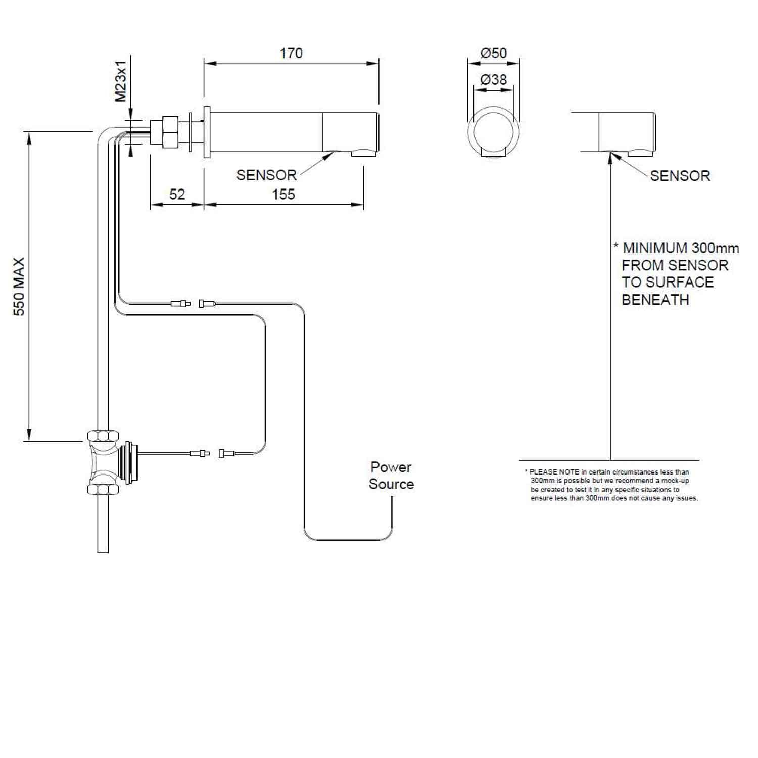 • Water Supply: Single inlet cold or pre-mixed – a TMV2 or TMV3 thermostatic mixing valve is recommended for premixed applications