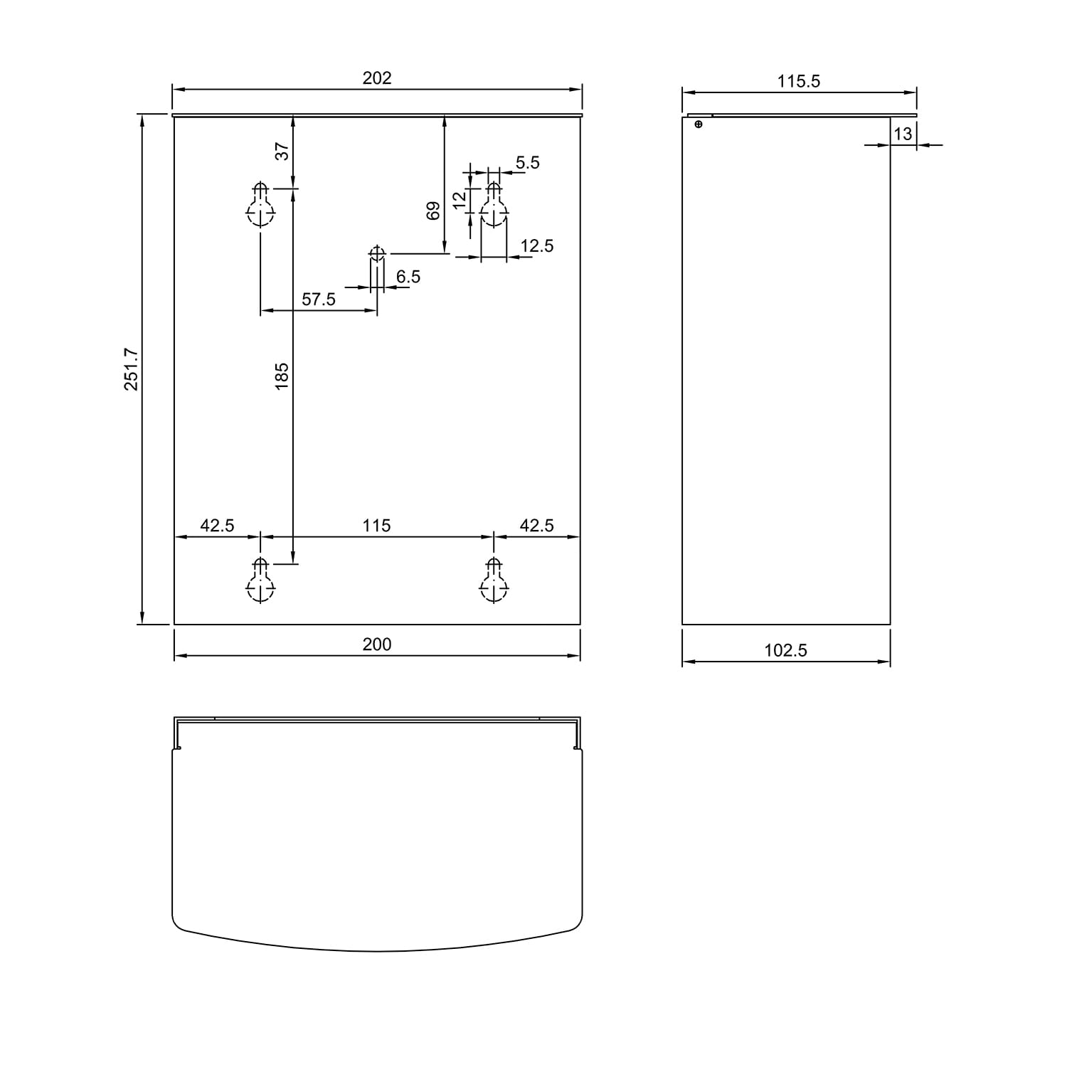 • Height 250mm x Width 200mm x Projection 115mm