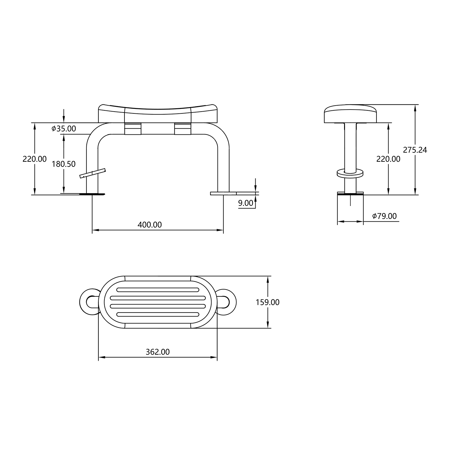 DOLPHIN STAINLESS STEEL PADDED BACKREST