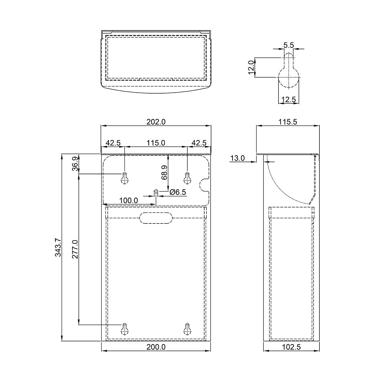 • Wall mounted sanitary Bin