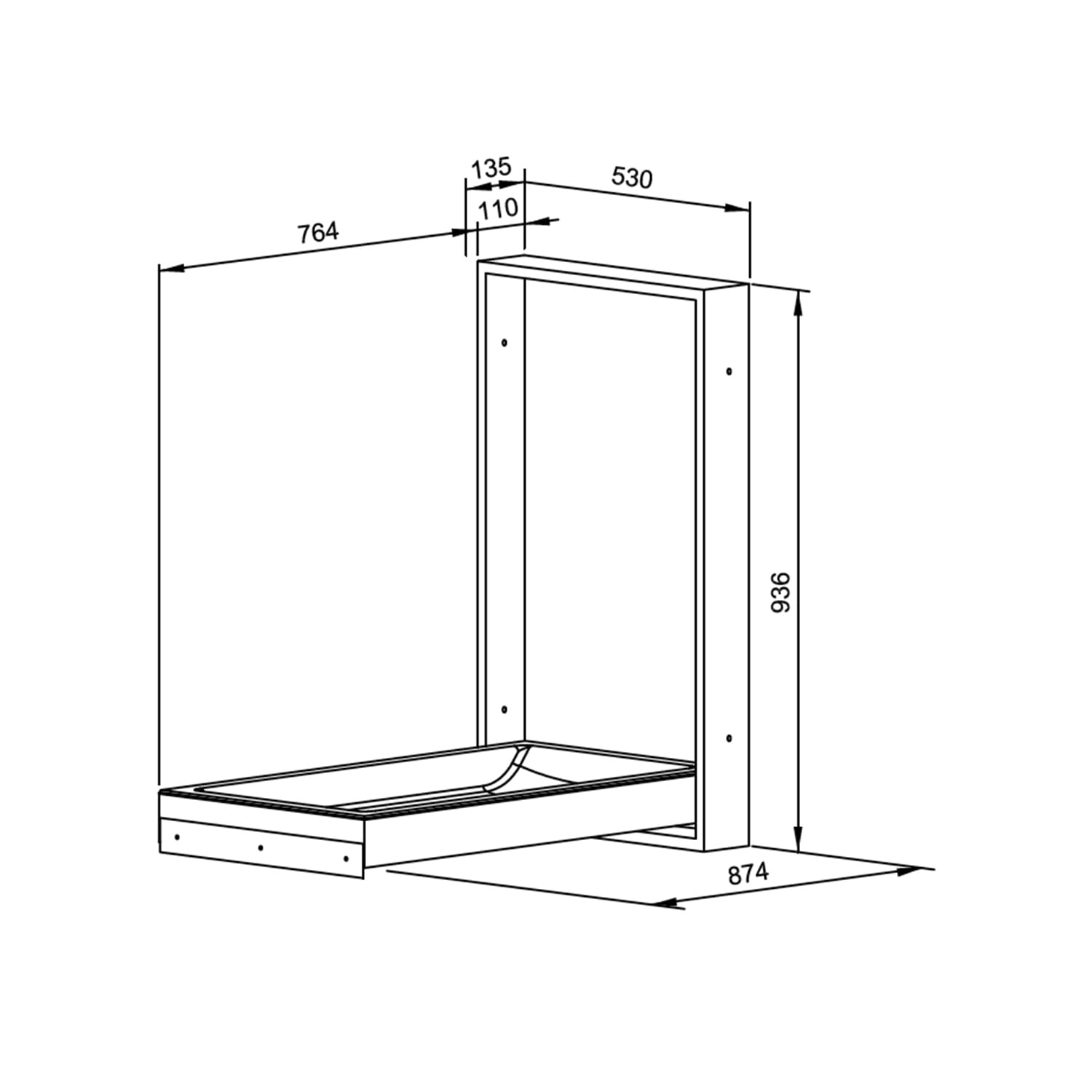 - Installation dimensions: 532 x 938 x 110 mm