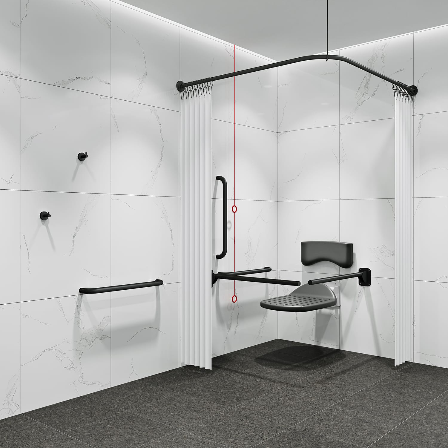 - All items of a co-ordinated design to achieve a consistent aesthetic look throughout the washroom