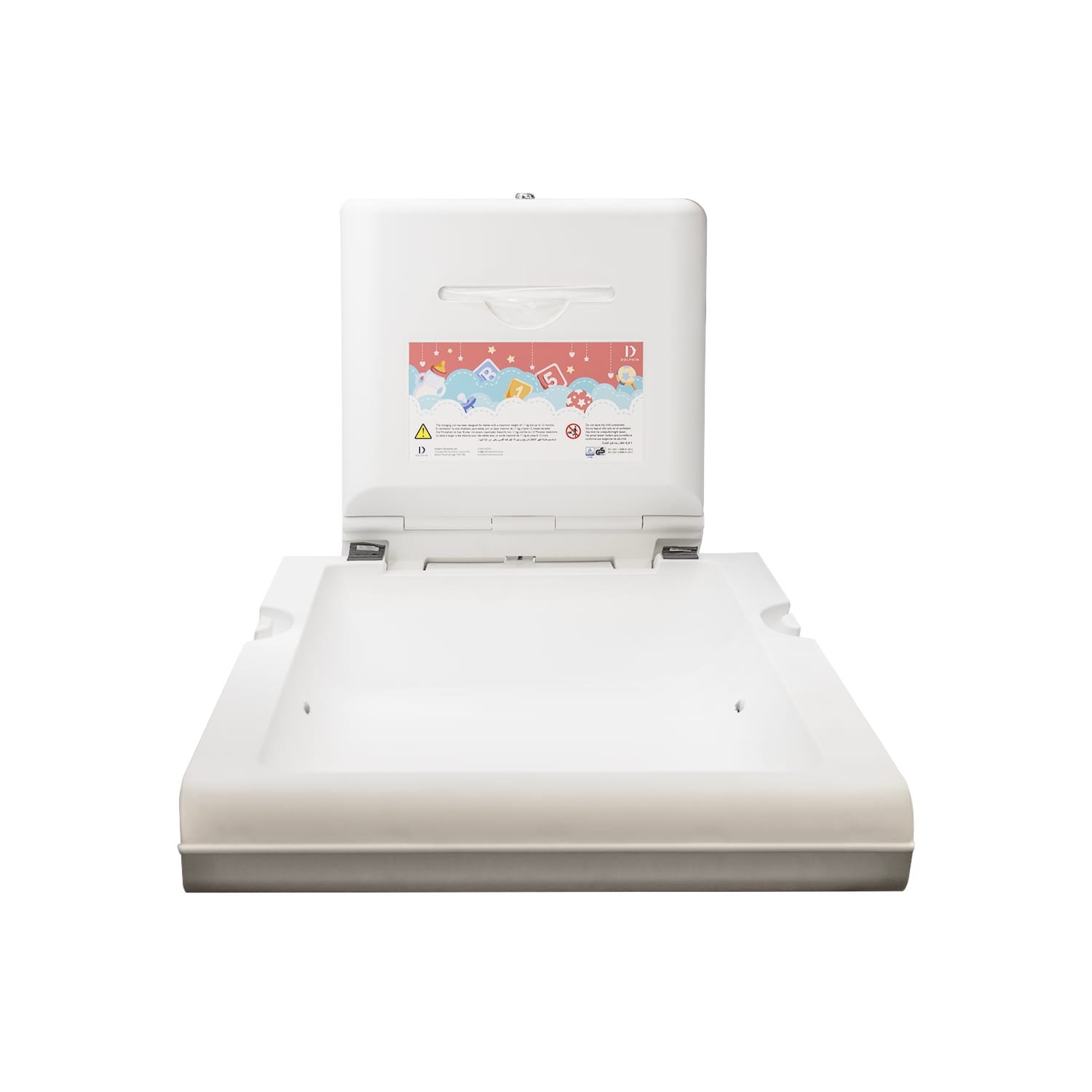 - Surface-mounted baby changing station made of bacterial-resistant polypropylene and with 304 stainless steel exterior