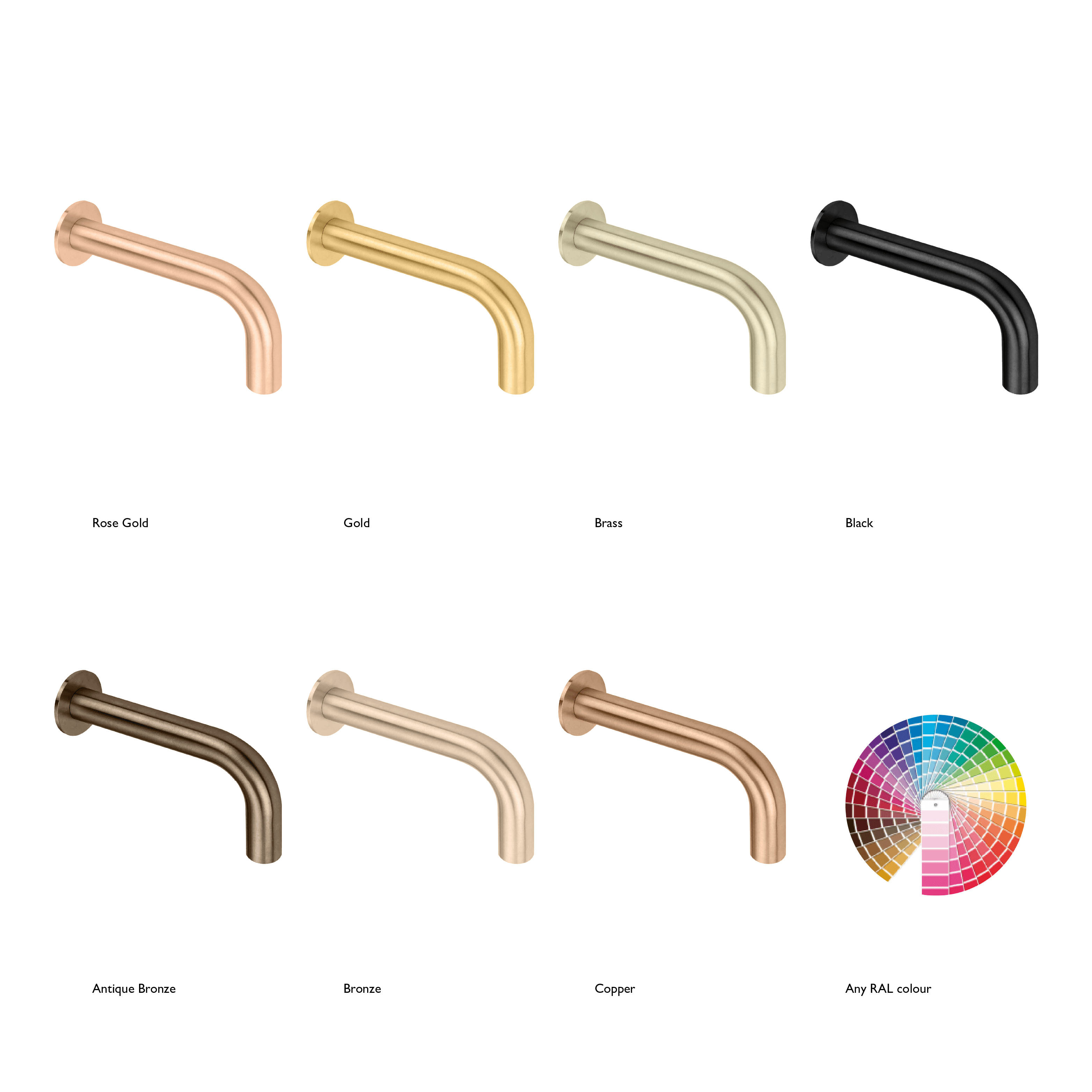 - Special Finishes: PVD, PPC in all RAL colours, Mirror Polish or Brushed Satin Stainless Steel