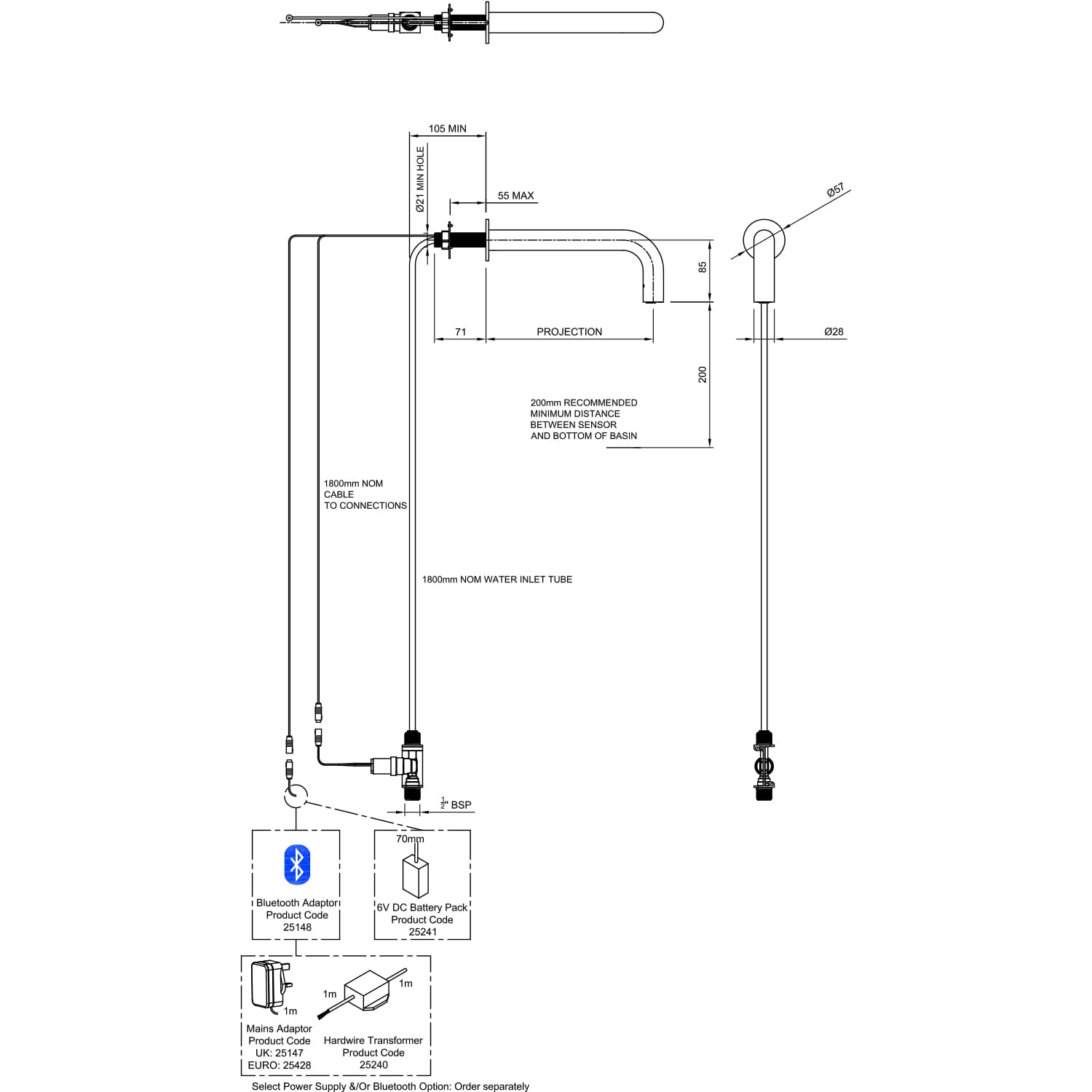 - Water Supply: Single inlet cold or pre-mixed – a TMV2 or TMV3 thermostatic mixing valve is recommended for premixed applications